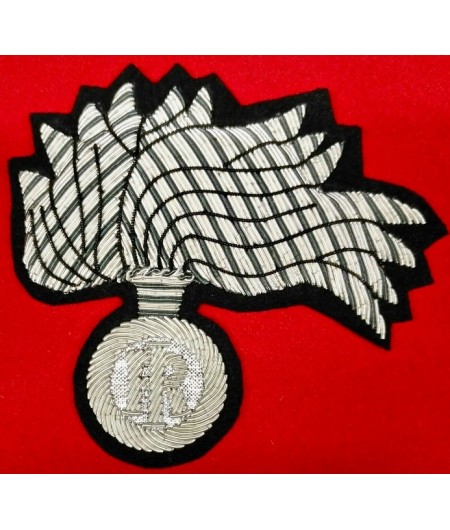 Fregio fiamma argento QS ricamata 13 punte canottiglia bombato per berretto