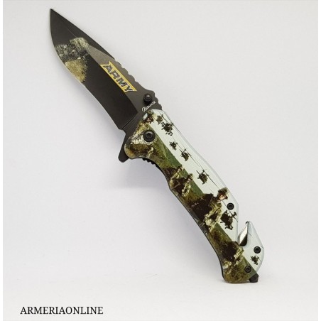 Materiale lama: ACCIAIO AISI 420 TEFLONATO Materiale manico: ACCIAIO CON IMMAGINI