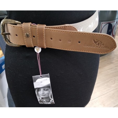 GARDEN GIRL CINTURA IN CUOIO E CANAPA CON MOTIVI FLOREALI FIBBIA IN METALLO