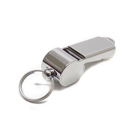 Fischietto in metallo cromato con pallina interna e anellino per l' aggancio di una catenella ( catenella non compresa ).